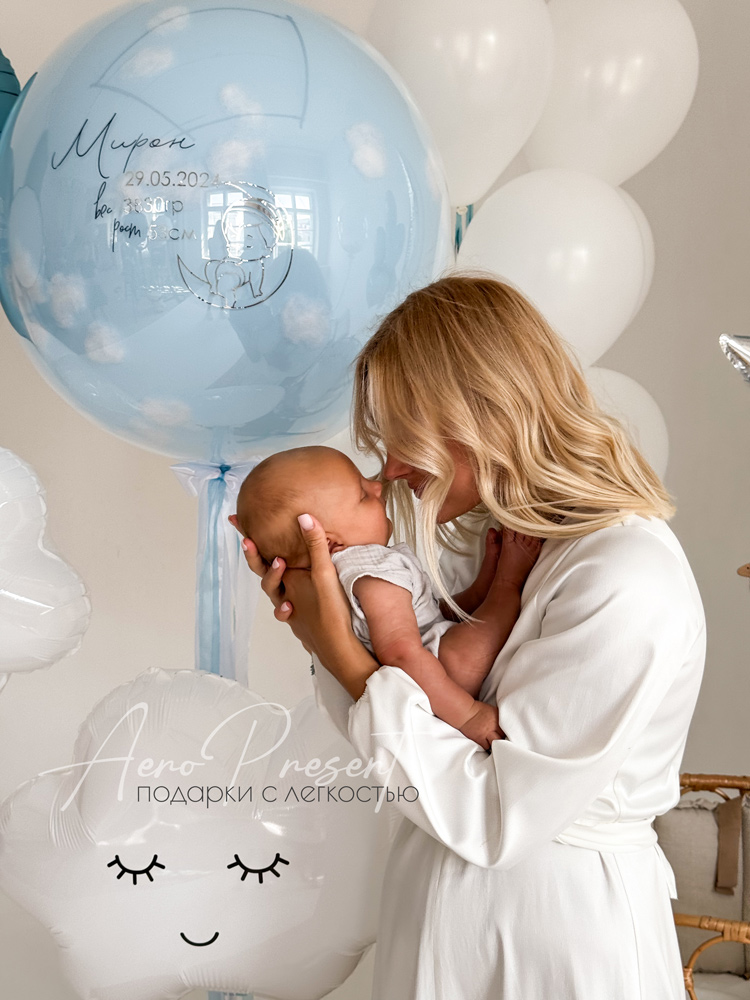 Шары с надписями, такими как "Добро пожаловать, малыш!", "С рождением!" или с именем ребёнка, добавят персонализации и особой значимости событию. Надписи можно заказать заранее или сделать самостоятельно.