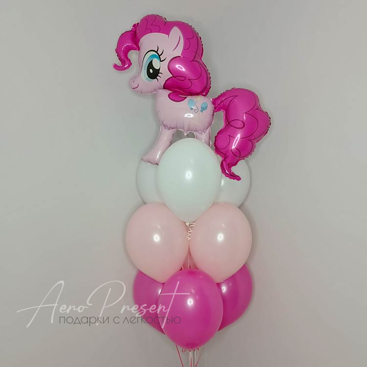 Фонтан из 9 воздушных шаров с гелием и фольгированного шара Пинки Пай.