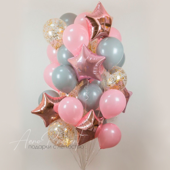 - латексные шары ПРЕМИУМ (нежнорозовый, серый) - 15 шт.