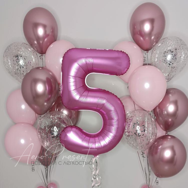 - 2 букетов с 4 шарами хром, 4 шарами премиум пастель, 2 шарами с конфетти