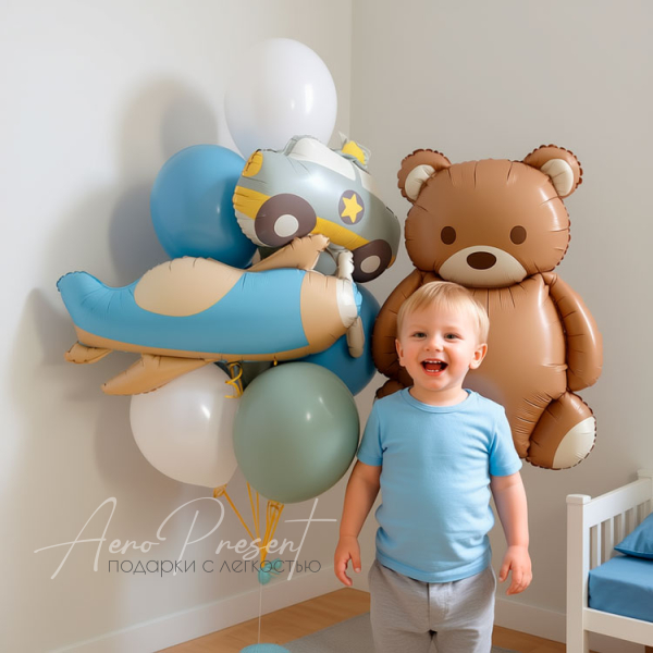 - 2 фольгированных шара самолет и машинка;