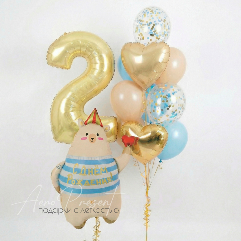 - 1 фольгированная фигура «Медвежонок с надписью “С днём рождения”», высота около 80 см.