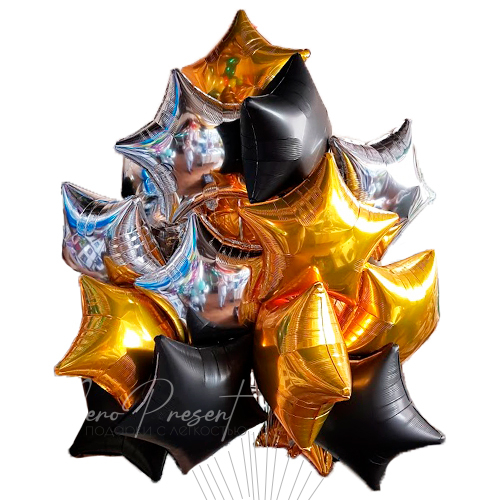 —Черно-Серебряно-Золотые звезды, фольгированный шар