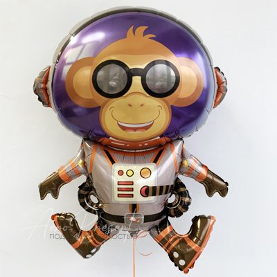 - Фольгированный шар с гелием в виде обезьянки-космонавта. Забавный дизайн с большими очками и скафандром отлично подойдёт для детского праздника или тематической космической вечеринки. Такой шар поднимет настроение и станет ярким украшением мероприятия.