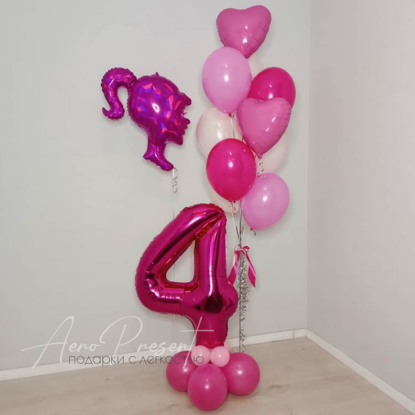 - Фонтан из 8 латексных шаров и 2 фольгированных сердец.