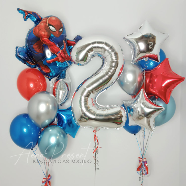Комплект для любителя человека паука с цифрой на выбор и двумя фонтанами в состав которых входит: