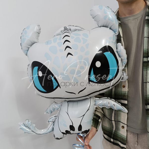 Фольгированный шар в виде дракона белого цвета — крошечный дракон с огромным сердцем!