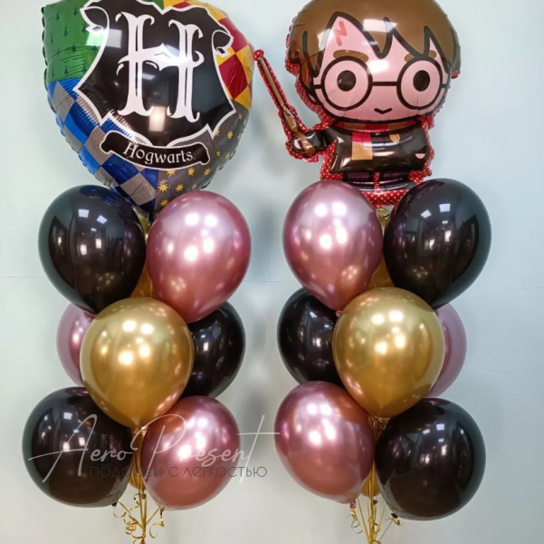- 2 букетов, в каждом тематический фольгированный шар, 6 шаров хром, 3 латексных шара пастель