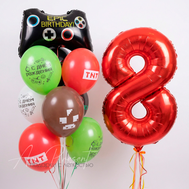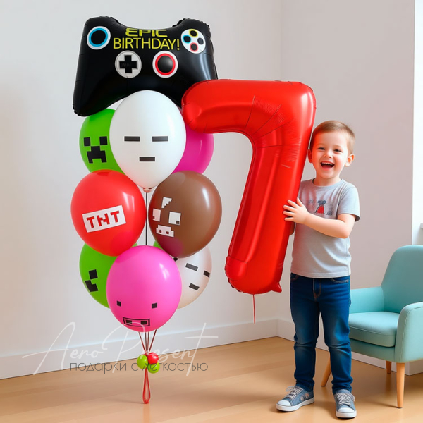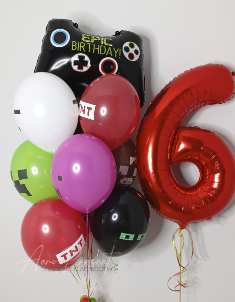 - 9 латексных шаров в тематике "Майнкрафт"