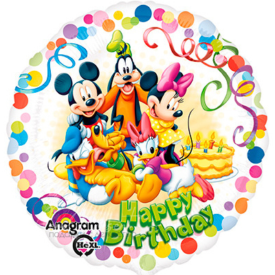 - Фольгированный шар с гелием в виде круга с Микки Маусом и его друзьями