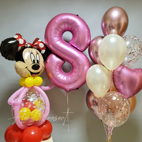 Набор с фигурой Минни, букетом из 10 воздушных шаров и цифры на выбор