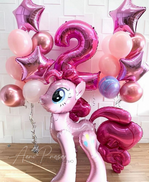 - 2 букета из 2 фольгированных шаров, 2 шаров хром, 1 мраморного агата, 5 гелиевых шаров.