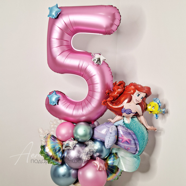 Оригинальная композиция из воздушных шаров с цифрой на выбор в стиле русалочка.
