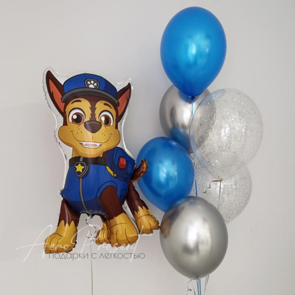 - Букета из 2 шаров металлик, 2 шаров хром и 2 шаров с конфетти.