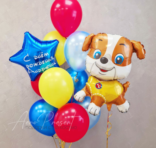 - Букета из 9 латексных шаров, 1 фольгированного шара с надписью с Днём Рождения
