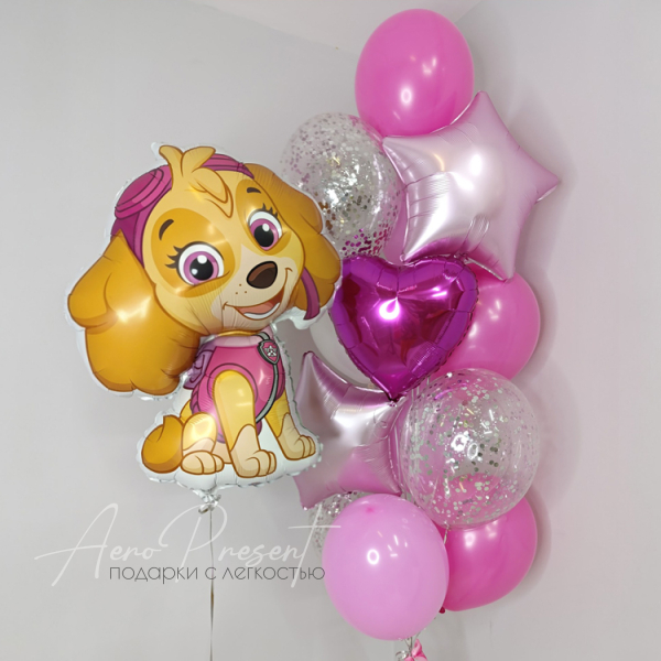 - Букета из 3 фольгированных шаров, 3 шаров с конфетти, 7 латексных шаров