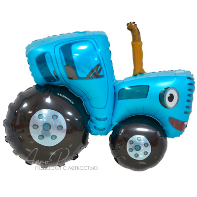 - Фольгированный шар с гелием в виде синего трактора с улыбающейся мордочкой. Отличное украшение для детских праздников и тематических вечеринок.