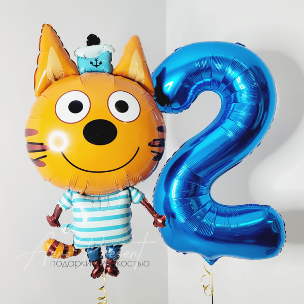 Набор с фольгированной цифрой на выбор и фольгированным шаром Коржик (по запросу поменяем на любой другой фольгированный шар, не только из этого мультфильма)