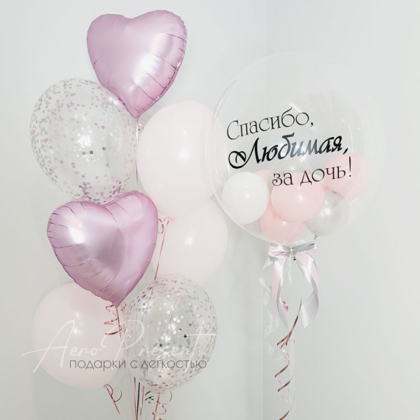 - 6 латексных шаров в серебристо-розовых тонах.