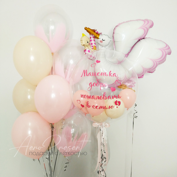 - Фольгированный шар "Аист с мальчиком в клюве"
