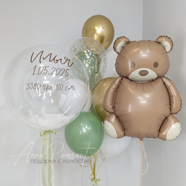 - Фонтан из 6 латексных матовых шаров, 2 шаров с конфетти и 2 шаров хром