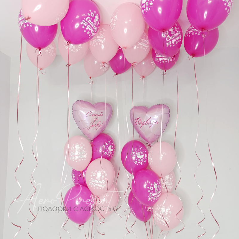 - Шары спасибо за дочку в количестве 15 штук для оформления потолка;