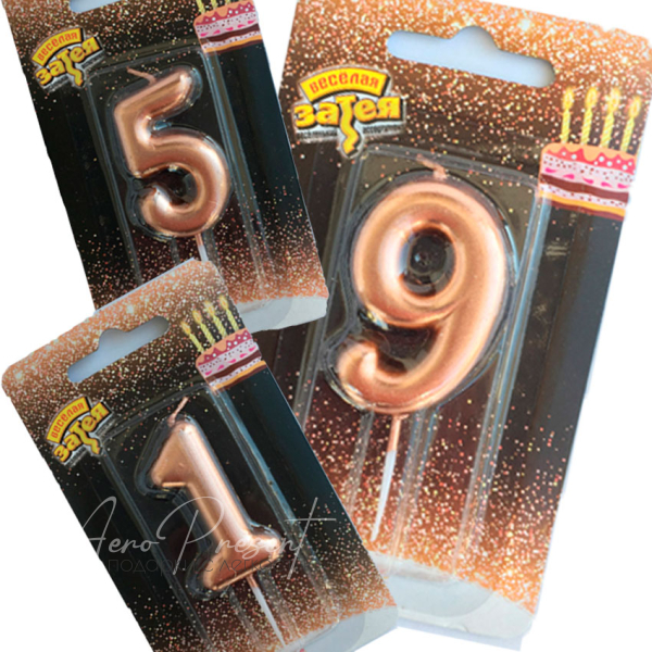 Золотая Свеча в форме цифры "0". Высота цифры 4,5 см.