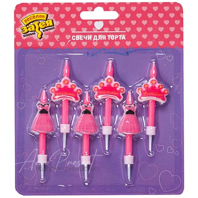 По 3 свечи в каждом из дизайнов: "Платье" и "Корона". Размер свечи: высота 6см (высота с подставкой - 7,5cm); ширина 2см.