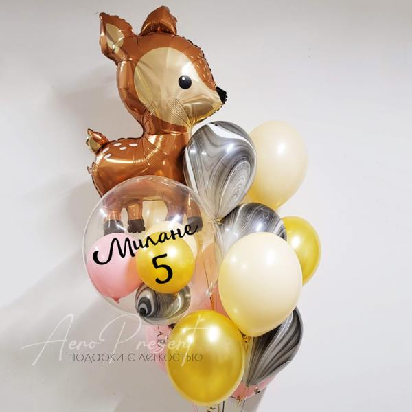 - Баблса с наполнением шарами и индивидуальной надписью.