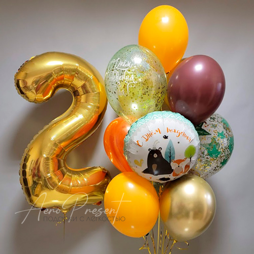 - 3 шаров с принтом и наполнением конфетти;