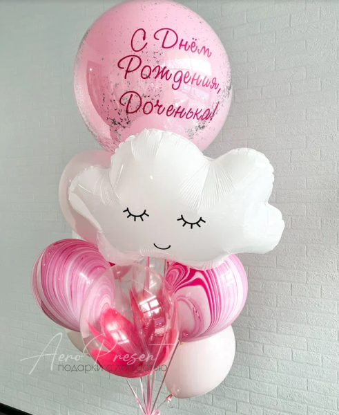 - Стеклянный шар гигант с надписью "С Днём Рождения" с блестками;