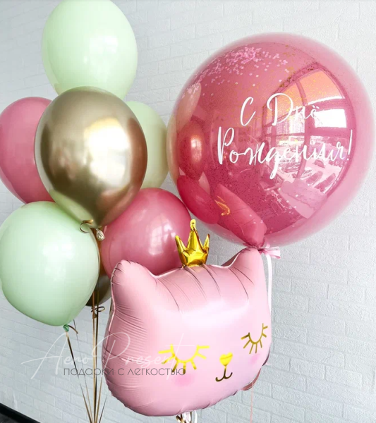 - фольгированный шар голова спящей кошечки-принцессы - 1 шт.