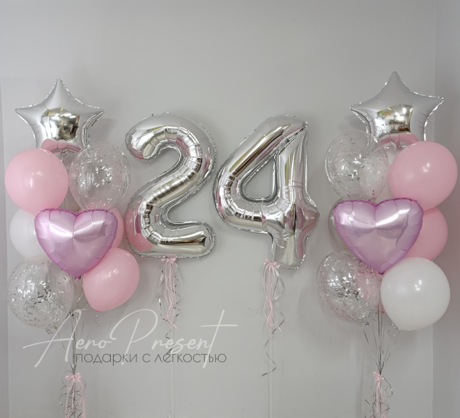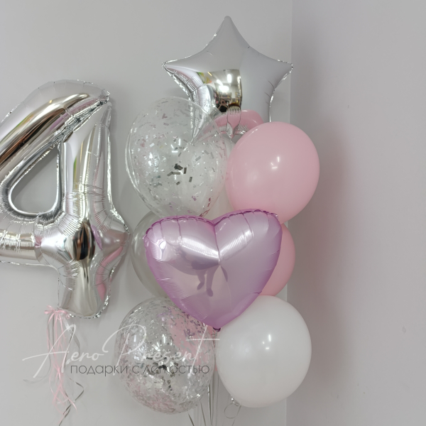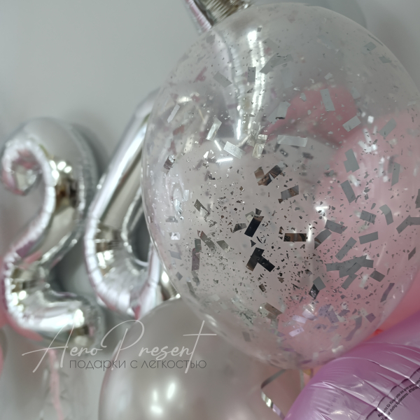 ✨️4 шара с наполнением конфетти и поздравительной надписью на них;