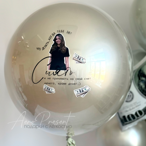 Оригинальный набор воздушных шаров, подойдет как для мужчины, так и для женщины. Надпись на шаре можно изменить на другую.
