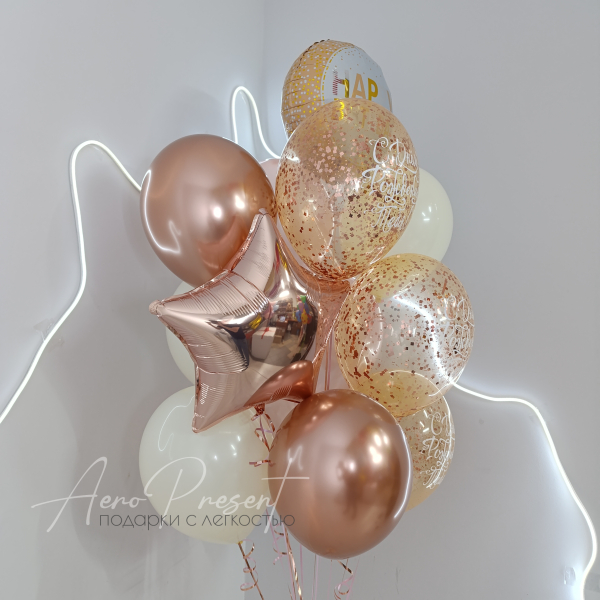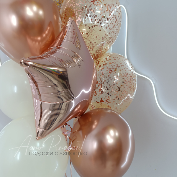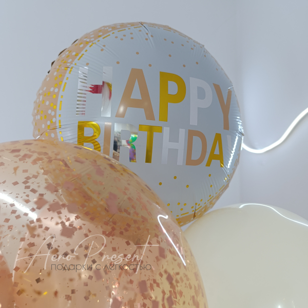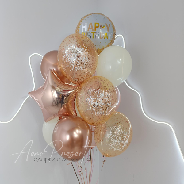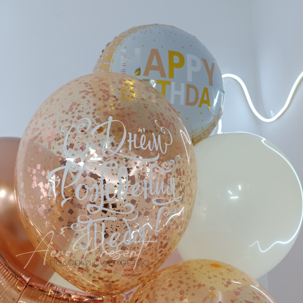✨️Шарик с наполнением конфетти и принтом "С Днём Рождения тебя" - 3 шт.;✨️Шар хром цвета "Розовое золото" - 2 шт.;