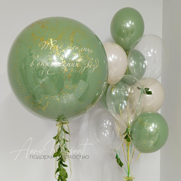 ✨️Шар гигант с нанесением надписи с эффектом стекла с мерцающим эффектом;✨️7 шаров с эффектом стекла с мерцающим эффектом;