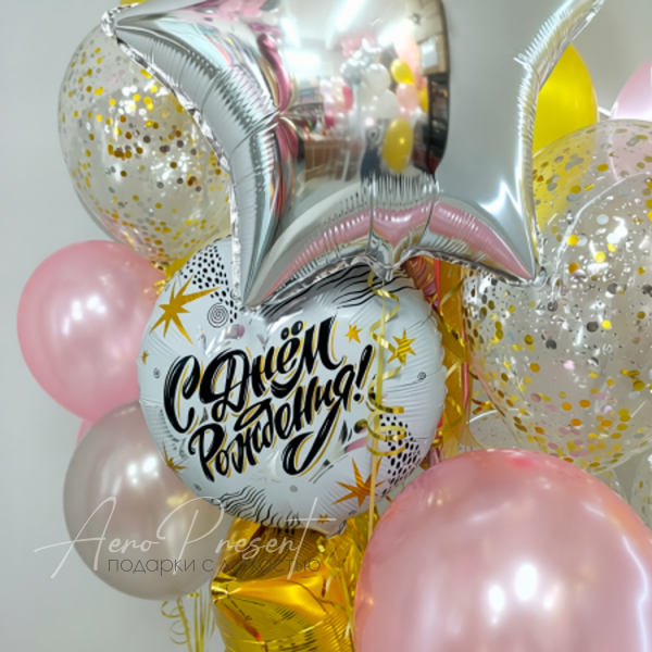 - шар фольгированный с рисунком Happy Bithday - 1 шт.