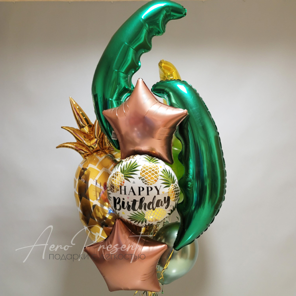 - 3 фольгированных шаров в виде пальмовых листьев;