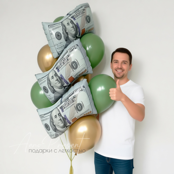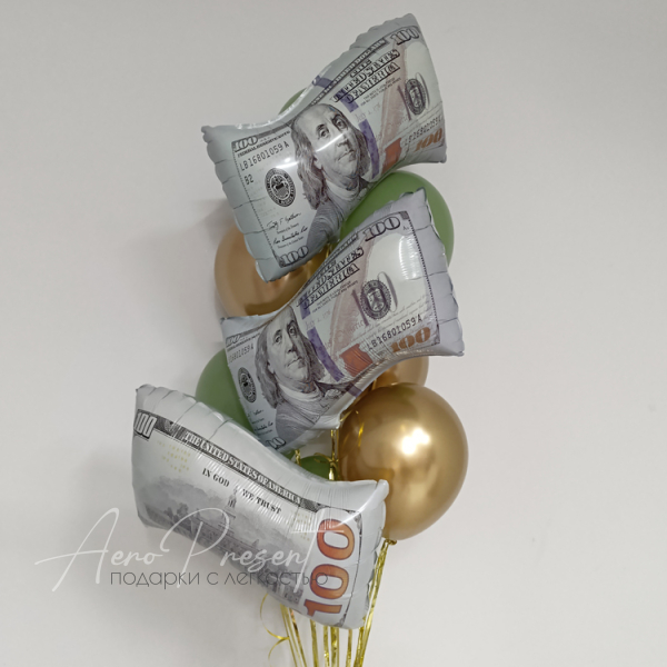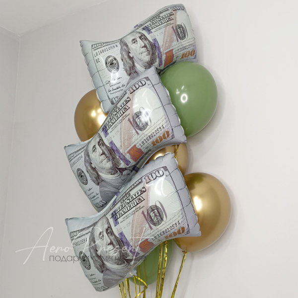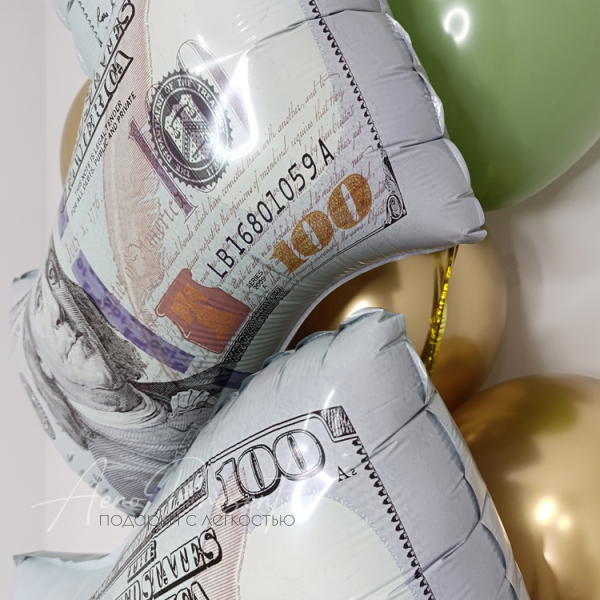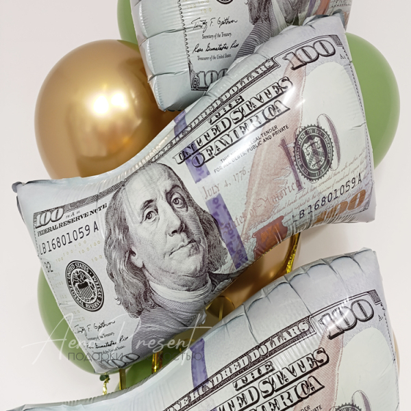 ✨️ 3 фольгированных шара в виде купюры 100 долларов;