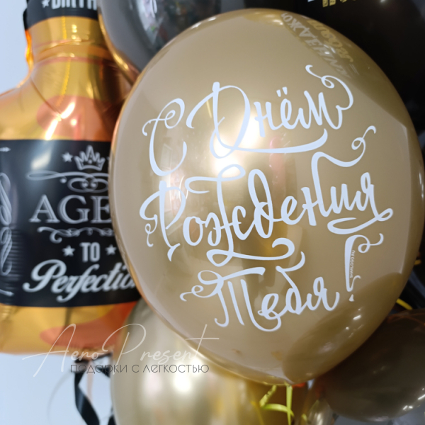 ✨️ 2 шара черного цвета с принтом С Днём Рождения тебя;