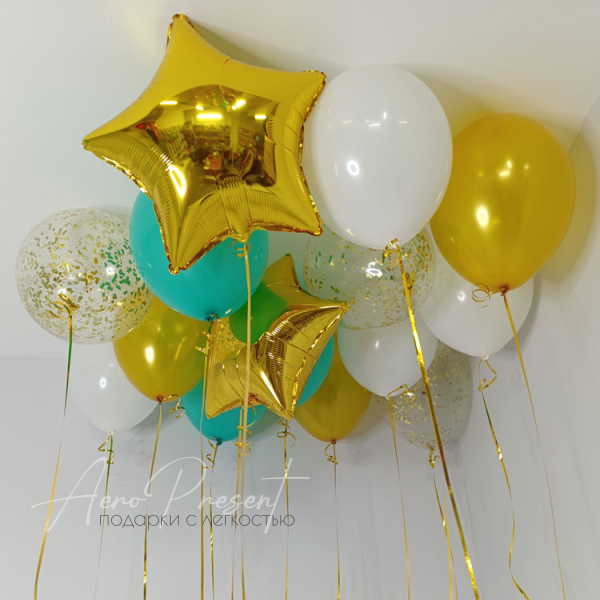 Оригинальный микс шаров металлик, шаров пастель, фольгированных звезд и шаров с конфетти