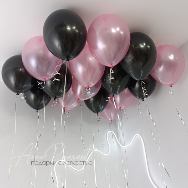 Воздушные шары с гелием черный пастель и розовый металлик