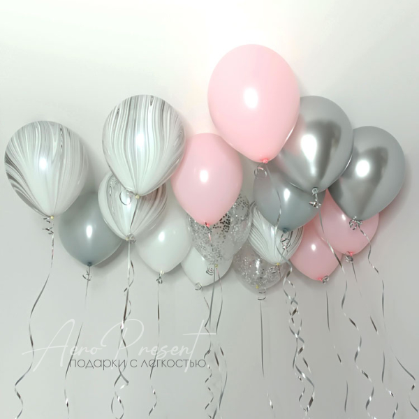 Оригинальный микс шаров пастель, мраморных шаров, шаров с конфетти и шаров хром