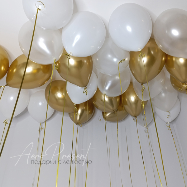 Оригинальный микс белых матовых шаров премиум и золотых шаров хром
