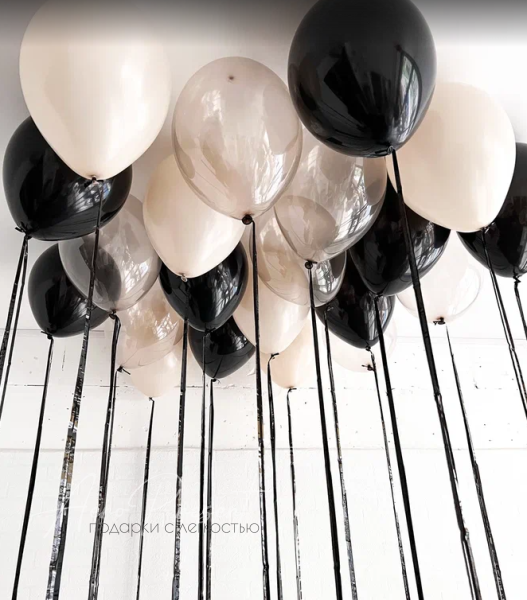Необычный микс с черными и бежевыми шарами с добавлением шаров серых кристальных шаров баблов.