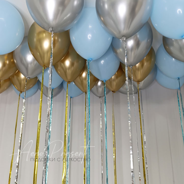 Этот набор шаров с изысканными оттенками, создаст атмосферу утонченного праздника, наполнит пространство радостью и легкостью и легкостью за счет эффектных, почти невесомых лент в виде парящего дождика.