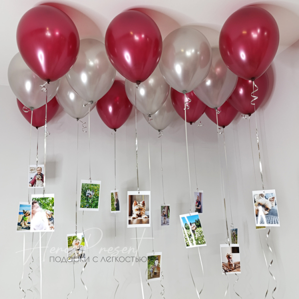 Микс из воздушных шаров с фотографиями. Цветовая гамма шаров может быть изменена на желаемую.