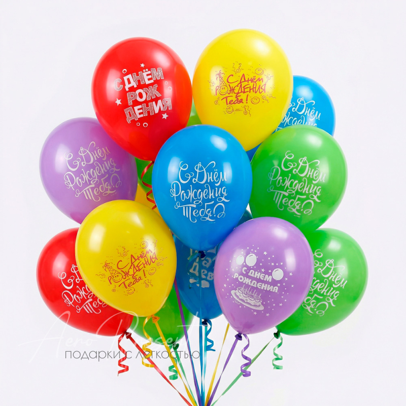 Весёлые разноцветные воздушные шары с праздничными надписями «С Днём Рождения!» и «С Днём Рождения Тебя!» украсят любой день рождения, создадут атмосферу радости, веселья и особой важности момента. Независимо от возраста именинника, такие шары будут отличным дополнением к декору, фотозоне или поздравлению. Яркие цвета — красный, синий, жёлтый, зелёный, фиолетовый — делают оформление по-настоящему праздничным и запоминающимся!