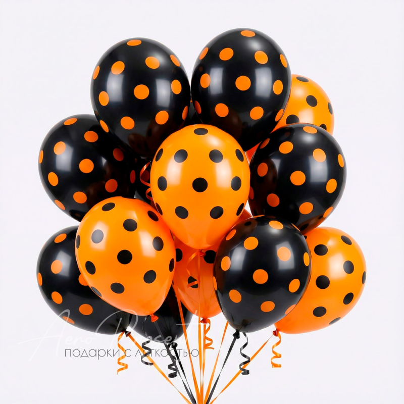 Яркие воздушные шары с контрастным узором в крупный горох: чёрные с оранжевыми точками и оранжевые с чёрными точками. Такой эффектный декор отлично подойдёт для Хэллоуина, тематической вечеринки, детского праздника, фотозоны или стильного оформления зала. Шары создают атмосферу веселья, яркости и сразу привлекают внимание гостей!