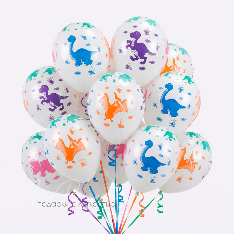 Белые воздушные шары с разноцветными изображениями динозавров — идеальное украшение для детского дня рождения, тематической вечеринки или праздника в стиле «Дино». Яркие картинки забавных динозавров в зелёных, фиолетовых, оранжевых и синих тонах мгновенно создают атмосферу приключений и исследовательского настроения! Такие шары понравятся маленьким любителям доисторических обитателей, украсят фотозону и станут отличным дополнением к праздничному декору.